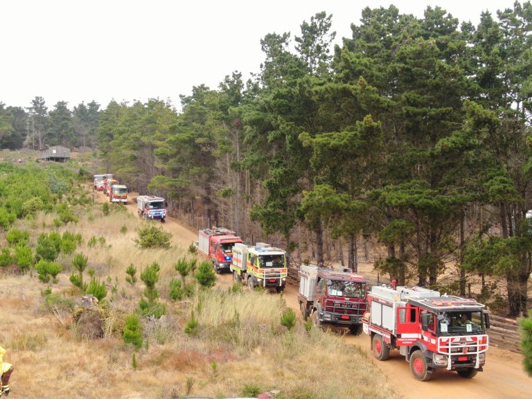 Fueron más de una veintena de carros bomba y vehículos de apoyo logístico junto a más de 200 bomberos los que fueron convocados a la localidad de Laguna Verde, Valparaíso, donde se simuló un incendio forestal de grandes proporciones posicionado de forma ficticia en la región del Maule, hasta donde las fuerzas de tarea de las respectivas instituciones bomberiles debieron movilizarse para el combate de la emergencia simulada que se trabajó con distintos escenarios.